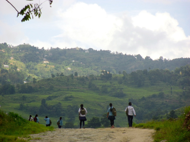 (Some students walk – up to 2 hours each way – to Sankhu-Palubari Community School to access their right to education / Photo by Laura Sandall)