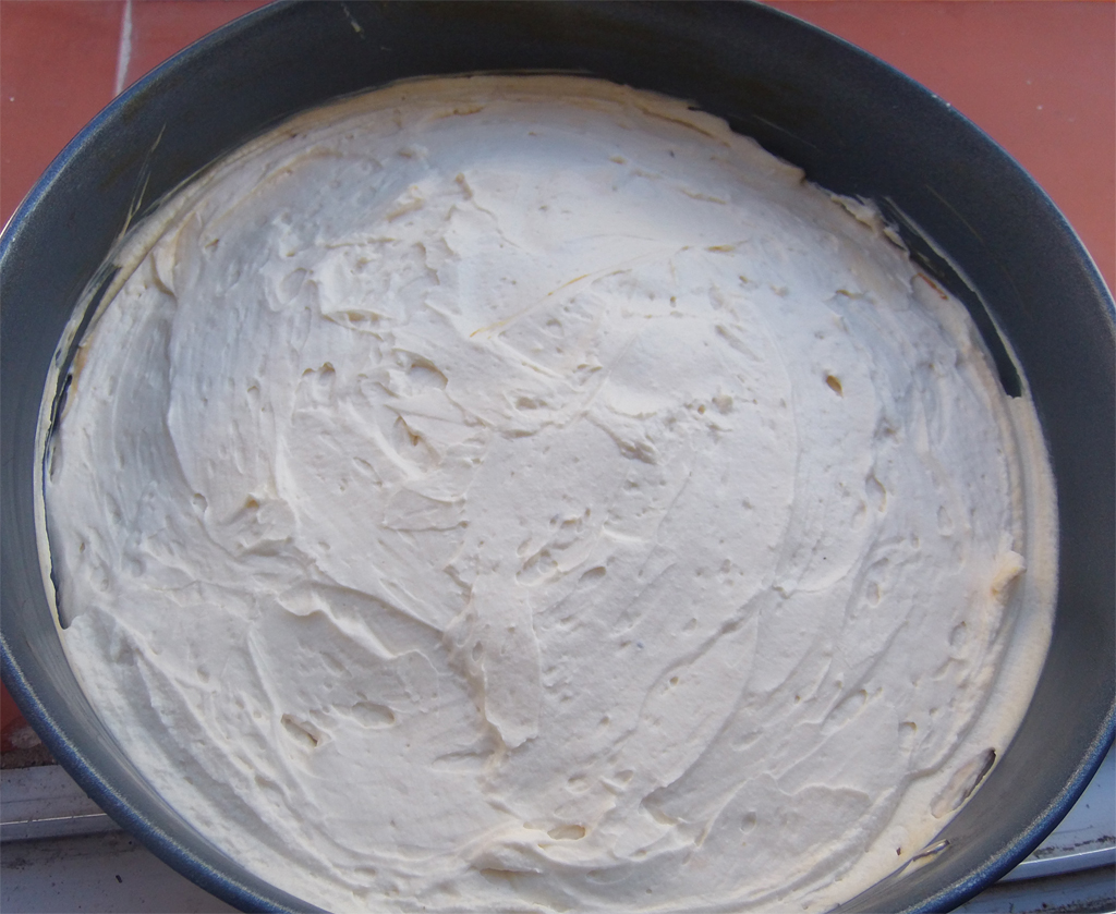 - Add the rest of the cheese and try to spread it as even as possible. Our cake is practically ready now (how easy was that?!). Chill it for at least 3 hours.