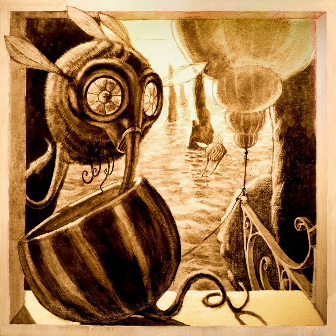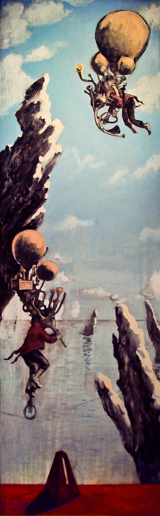 Músico aerostático y musiciclo. Técnica mixta (óleo y acrílico),, 203 x 72 cm, 2012