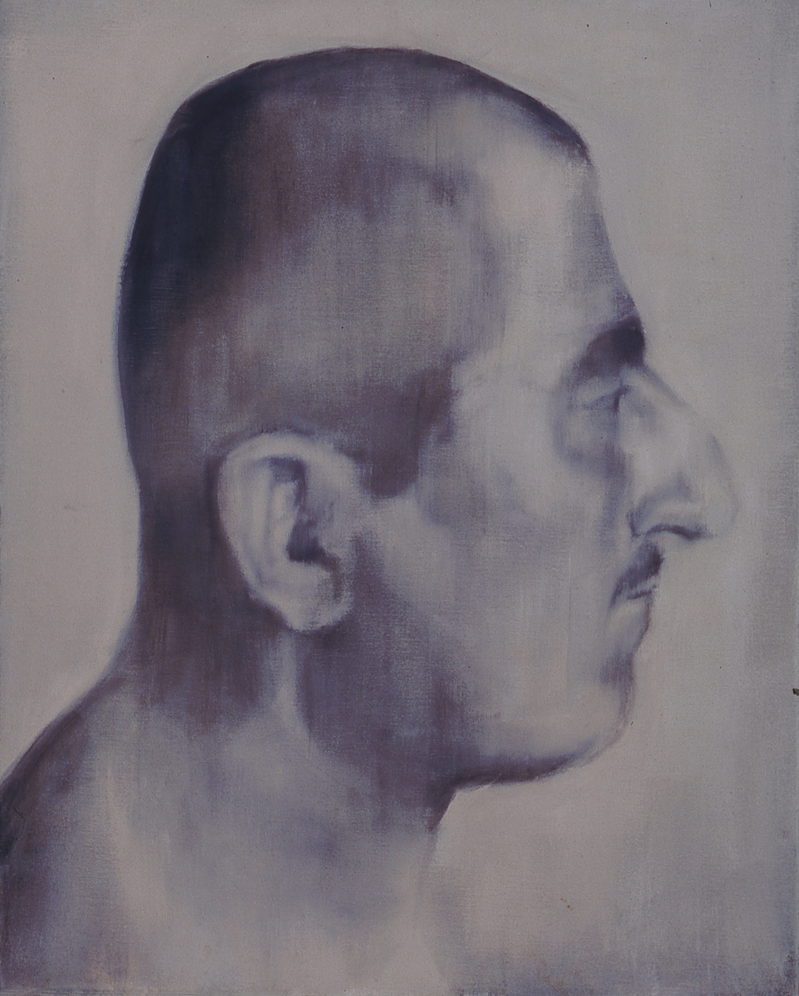 Carmi’s works have none of the trappings of honorific portraiture, where background surroundings, subject bearing and dress, together with a direct engagement with the eye of the viewer create the sense of social importance and psychological depth. His approach to the pictorial articulation of human likeness is steeped in troubling histories where anthropology, criminology, scientific racism and portraiture intersect. He revisits political uses of portraiture produced as evidence of claims made by 19th and early 20th century scientists about correlations between ethnicity, physical traits, behavior and intellect. These kinds of portraiture are associated more closely with photography and its evidentiary function than with painting, but Carmi manipulates their characteristics to great effect in transposing his reflections on such charged symbology to canvas. When discussing his work, Carmi frequently invokes the German eugenicist and Nazi sympathizer Hans Günther and his racial studies of Europeans, linking this mode of visualizing the human body to National Socialism and its use of science to rationalize its genocidal campaign against Jews. While this association fills Carmi’s retrieval of the style with tension and ambivalence – particularly because his actual subjects are Israeli Jews who escaped from Europe at the onset of Fascism – it bears noting that eugenics was widely accepted prior to WWII. Nearly every ethnic group known to humanity was transformed into a discrete object of study using its methods. Furthermore, formal characteristics of scientific illustration such as the isolation and abstraction of key elements and the magnification of details of organisms under scrutiny continue to prevail in the visual languages of medicine. Thus, I would refrain in my interpretation of Carmi’s paintings from suggesting that they are solely or even principally a commentary on the legacy of Nazism and its anti-Semitic visual culture. Carmi’s paintings delve more deeply into the politics of depicting human likeness, creating a critical appraisal of the discourse of positivism and its role in the arena of scientific observation of the body, where physical characteristics are the focus and ascertaining the key elements of type is the goal. He evokes the visual language of the mug shot, ethnographic studies of human subgroups and forensic medicine. These are, in essence visual languages that suppress the subjectivity of those depicted by turning the body’s exterior into an immanently legible text.