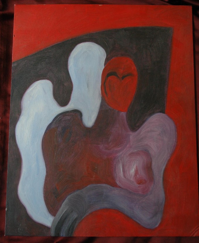 (Abrazo, Antonia Tejeda Barros, Den Haag, 2000. Óleo sobre madera, 50 cm x 40 cm)
