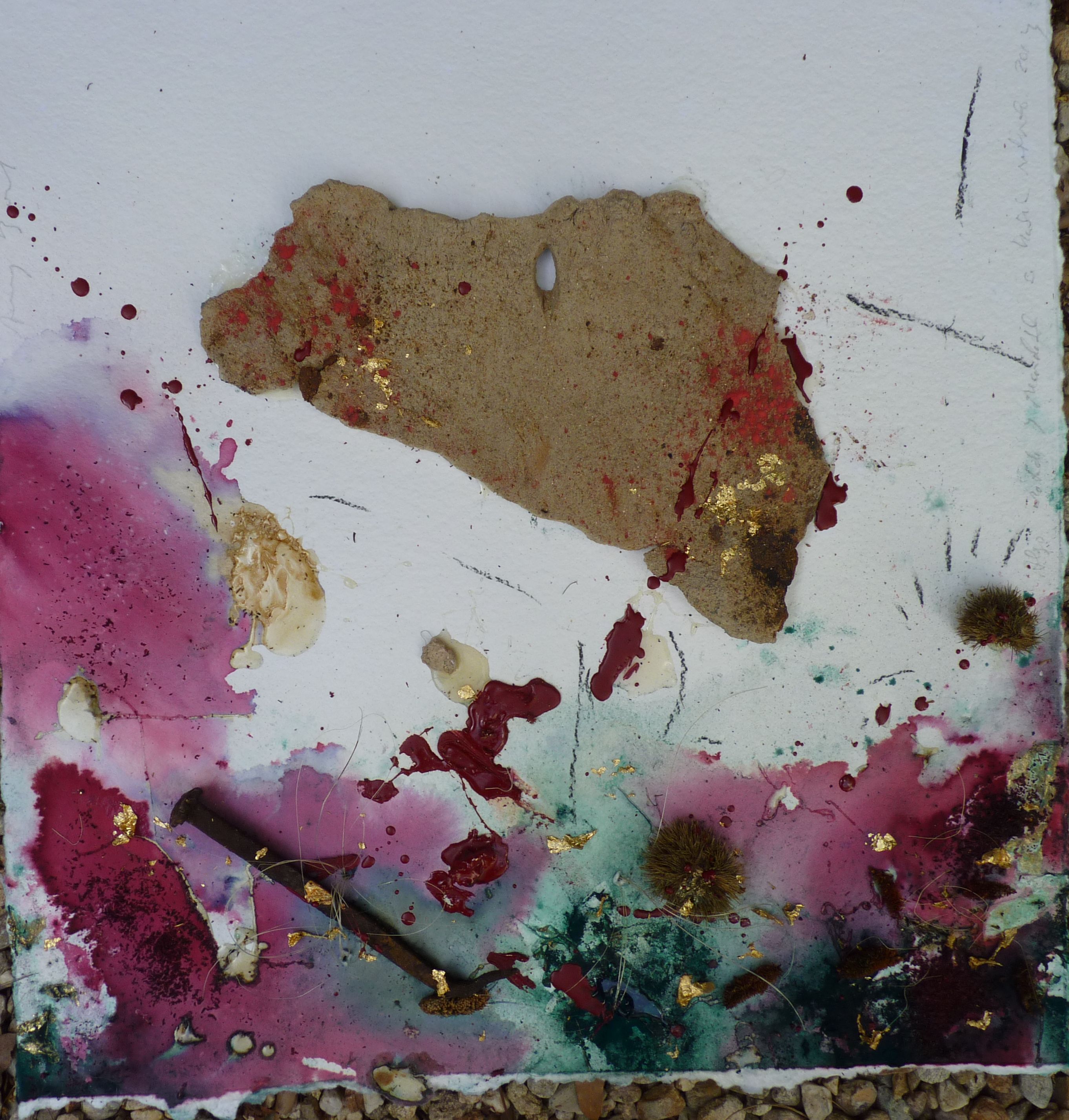 El lastre de piedra, enselñando su balnco vientre. 64×70 cms. Chamota refractaria, hibisco, cáscaras de castañas, pigmentos, resina y oro sobre papel Share this: Click to share on Facebook (Opens in new window) Facebook Click to share on X (Opens in new window) X Click to print (Opens in new window) Print Like Loading...