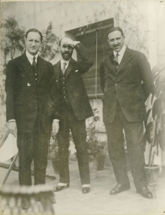 La fotografía con los tres caballeros ha capturado un momento de la historia de nuestro país y de su literatura, un poco como el insecto queda perennemente atrapado en la magia multimilenaria del ámbar. Es Madrid, es el número 8 de la calle Lista -hoy Ortega y Gasset-, y estamos en la terraza del domicilio del caballero del centro, Juan Ramón Jiménez (1881-1958). Es más que probable que corra el año de 1924 – en cualquier caso contamos con un terminus ad quem, puesto que JRJ ocupó aquella vivienda hasta 1927, en que se trasladó a Velázquez 96. El anfitrión esperaba la visita y ha calzado para la ocasión unos botines de dandy de dos colores, en aquellas fechas un poco pasados de moda ya; con algo de malicia podríamos imaginar que Zenobia ha estado caminando de puntillas por la vivienda hasta la llegada de los visitantes. La foto además es casi un indeliberado acting out del papel que a cada uno ha acabado asignando una convencional historia literaria. A la derecha, Pedro Salinas (1891-1951) parece incómodo en el interior de su chaqueta, que compensa con una corbata saltarina -prefería las verdes-; para posar ha echado los brazos atrás un poco desvalidamente – el encuentro tiene que haber sido muy formal. Sabemos que era hombre de una talla considerable, y algún amigo lo ha descrito como ”siempre un poco perdido en sus ropas” (Guillermo de Torre), con cuellos holgados y un punto de propensión al sobrepeso. Era un hombre también algo urgente, activo, y abierto y cordial, pero también conocedor de las distancias, esa combinación de distinción y campechanía que, se lee, distinguía otrora a los madrileños. Un señorito no lo ha sido nunca, tampoco intelectualmente; en la España radicalizada, podemos pensar que también muy mal educada, de los 20 y los 30 era usual motejar así a profesionales como él, o su amigo de la izquierda, justo cuando por vez primera el país había desarrollado unas clases medias cultas. Cierto que Salinas y sus amigos experimentan por entonces una casi pública repugnancia por los usos del ejercicio político en aquel Madrid; los todavía jóvenes son orteguianos, además, y el propio Salinas registra en 1930 la “baja calidad moral del español”.