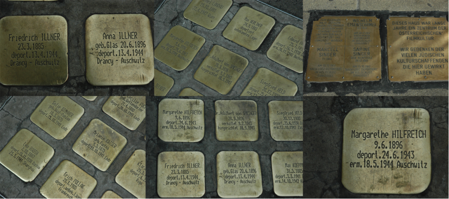 Por las calles de Viena pueden verse, de vez en cuando, unas plaquitas doradas llamadas stolpersteine que recuerdan, tímidamente, las deportaciones y masacres de judíos durante los años 1938-1945. Las plaquitas se hallan en el suelo, cerca de la última vivienda de los deportados. En las plaquitas se lee el nombre y apellido de la víctima, la fecha de nacimiento, la fecha de deportación y la fecha de muerte (si se conoce). Al lado de las fechas de deportación y muerte puede leerse el nombre del gueto o campo de concentración o exterminio: Riga, Lodz, Theresienstadt, Dachau, Auschwitz … En Austria, oficialmente, fueron deportados y masacrados 65.000 judíos. La mayoría no tiene plaquita dorada. Las stolpersteine son una creación de Gunter Demnig. Hasta hoy se han esculpido y colocado alrededor de 43.500 stolpersteine en 1.000 pueblos y ciudades de Alemania, Austria, Holanda, Bélgica, Francia, Italia, República Checa, Eslovaquia, Hungría, Polonia, Rusia, Eslovenia, Ucranía, Croacia, Noruega, Suiza y Luxemburgo. Las stolpersteine conmemoran todas las víctimas del Holocausto, no sólo las judías. 43.500 stolpersteine por 11 millones de víctimas es deprimente… Las stolpersteine cuestan 120 € y los gobiernos de Alemania y Austria no las pagan.